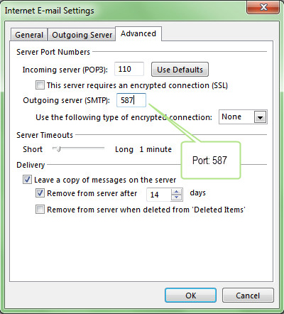 Step 5 Select the "Advanced" tab and type "587" in the "Outgoing Server (SMTP) Port" field